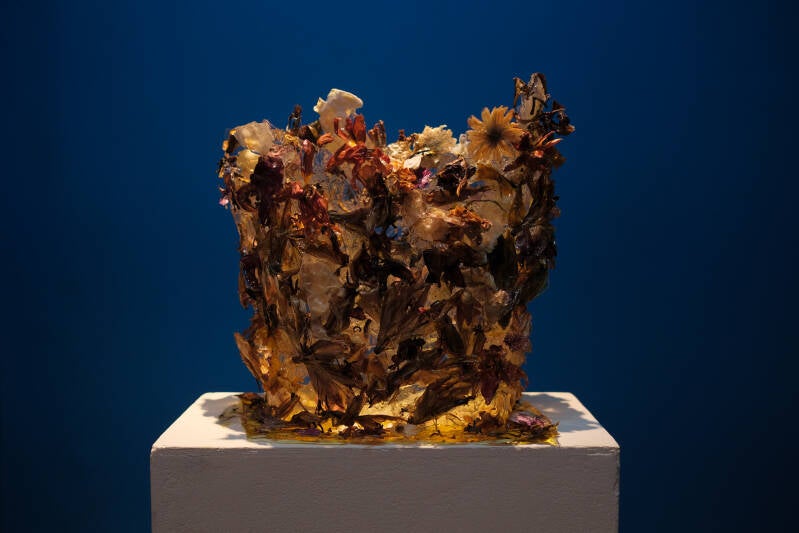 At the core of Sunset Heights is Goldiie’s use of resin to preserve flowers. This medium captures the fleeting beauty of blossoms and transforms them into timeless works of art. Each piece invites viewers to reflect on life’s cycles and the beauty found in impermanence.